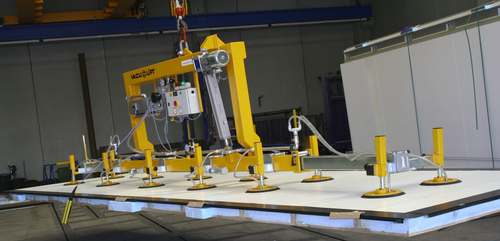 Dans les secteurs de l’artisanat (menuiseries aluminium, miroitiers, etc.) , une activité est très récurrente, celle de la manutention de bardages et panneaux sandwich, que ce soit à l’atelier ou sur chantier. De dimensions et poids très variés, cette activité représente un défi technique à laquelle les palonniers à ventouses sont la meilleure solution technique.