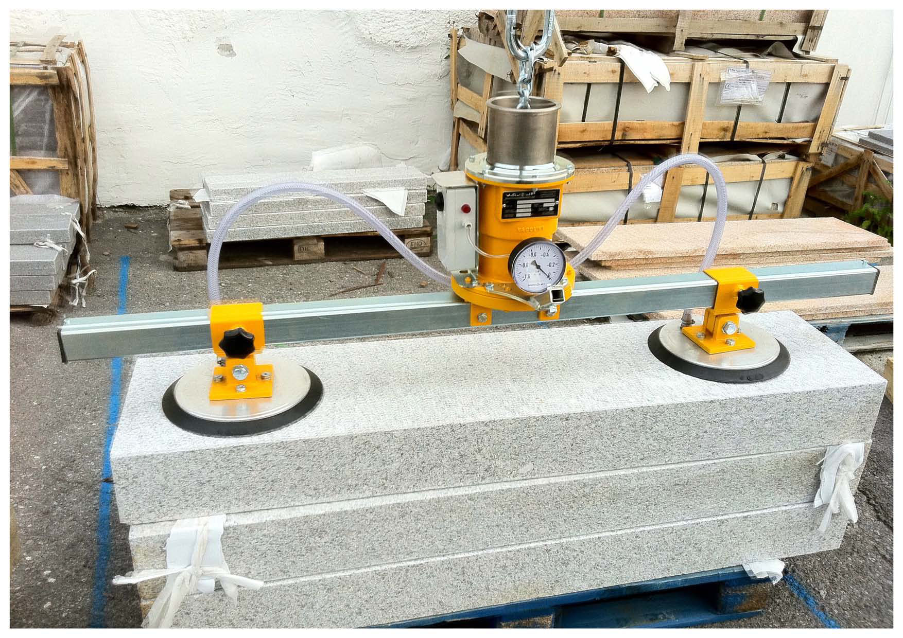 Dans les secteurs de la pierre naturelle, fabrication d’éléments en béton  (tailleurs de pierre, carrières, cuisinistes, fabricants d’éléments en béton, etc.), une activité est très récurrente, celle du levage de plaque de pierre et d’éléments en béton préfabriqués. De dimensions et poids très variés (Les pièces peuvent souvent peser plus de 1000 kg),  les opérations de manutention peuvent être répétitives et dangereuses. Pour palier à ces problématiques, les palonniers à ventouses représentent la meilleure solution technique.