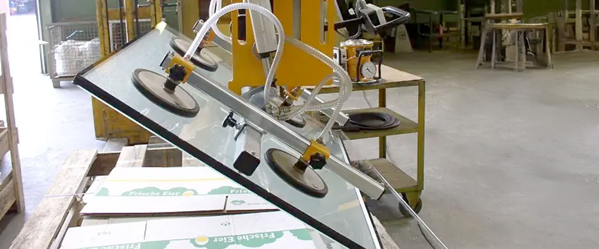 Dans les secteurs de l’artisanat (menuiseries aluminium, miroitiers, etc.) , une activité est très récurrente, celle de la manutention de verres & vitrages, que ce soit à l’atelier ou sur chantier. De dimensions et poids très variés (Les verres peuvent peser fréquemment jusqu’à 500 kilos), cette activité représente un défi technique à laquelle les palonniers à ventouses sont la meilleure solution technique.
