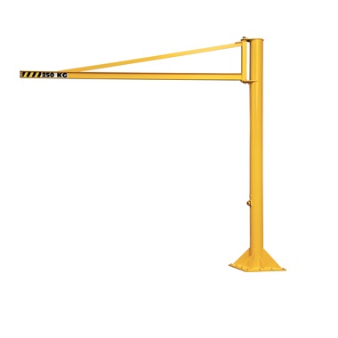 Ce type de potence s'utilise aussi bien en intérieur qu'en extérieur et se fixe au sol par chevillage chimique ou par tiges d'ancrages avec massif béton. Il permet de lever et déplacer différentes charges à faibles ou lourdes capacités jusqu'à 2 tonnes sur 270°.