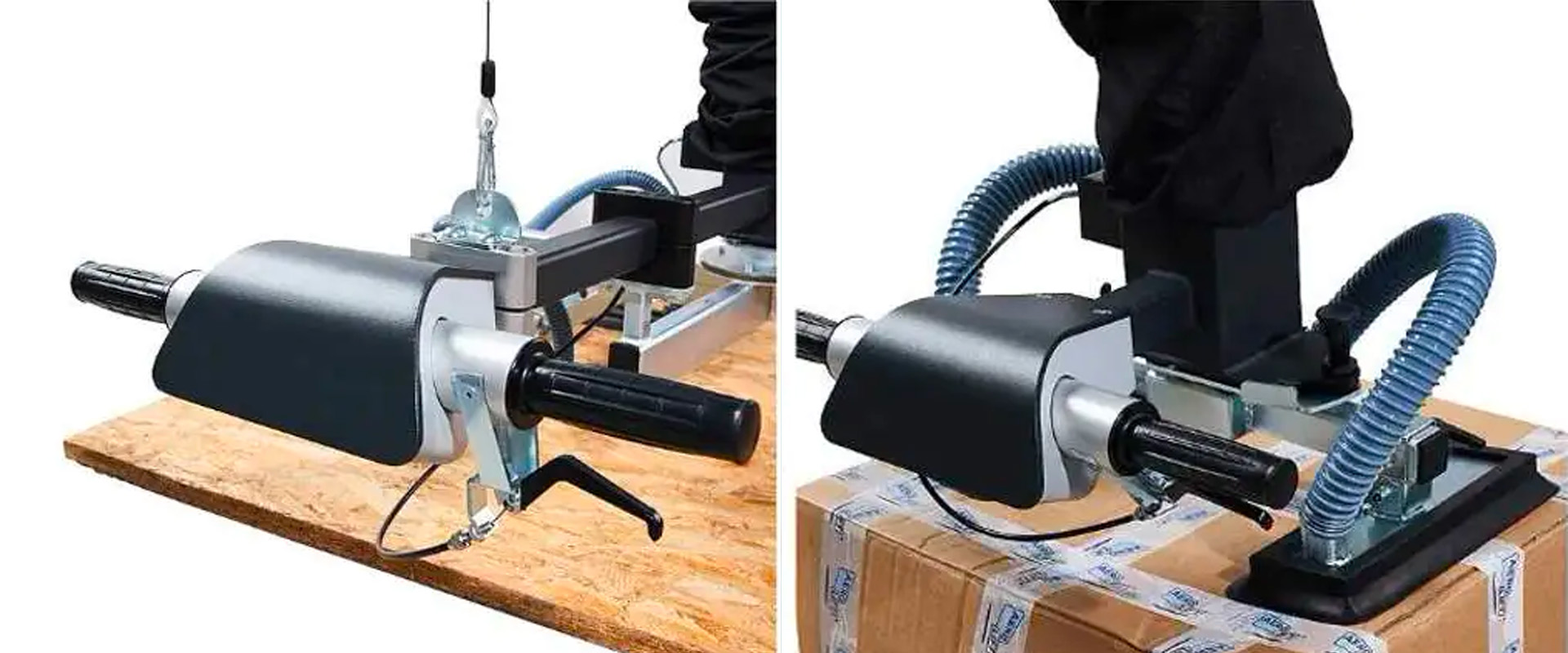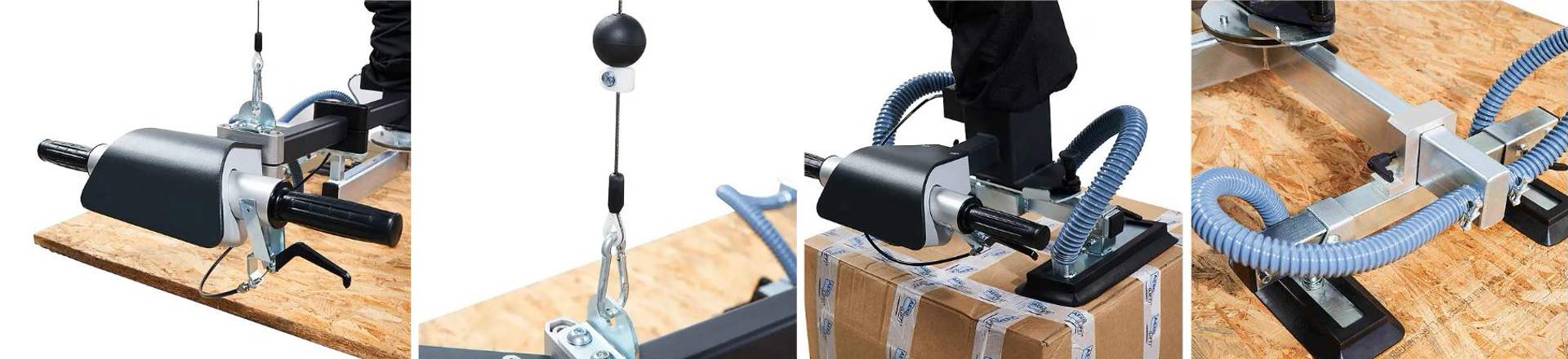 Il existe une multitude d’applicatifs dans lesquels un tube de levage peut être utilisé afin de transporter une charge. Qu’il s’agisse de manutentionner des bidons, palettes, fûts, des pièces présentant de grandes irrégularités, des marchandises peu stables, etc. le développement de l’outil adéquat permettra la manipulation de ces outils. Grâce à un accouplement mécanique à changement rapide, il est possible de changer rapidement les dispositifs de préhension de la charge pour différents types de marchandises à transporter.